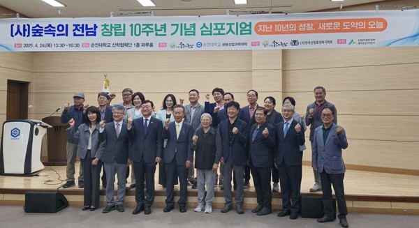 (사)숲속의전남(이사장 황금영)은 지난 24일 순천대학교 산학협력관 파루홀에서 ‘10주년을 기념하는 심포지엄’을 개최했다.