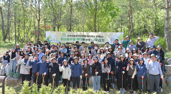 한국산림복지진흥원은 지난달 28일 대전 산림복지종합교육센터에서 탄소흡수원 확대를 위한 나무 심기 행사를 개최해 남태헌 원장 등 임직원 100여 명이 참석했다.