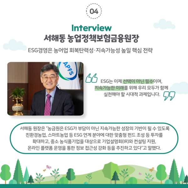 이와 관련, 지난해 농식품 분야에서 가장 적극적으로 ESG 경영 활동을 펼쳐 ‘2024 대한민국 농식품 ESG 경영대상’ 시상을 수상한 기업·기관에 대해 시리즈를 통해 집중 조명하고자 합니다.