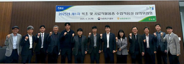 농협경제지주 축산경제는 지난달 24일 서울 서대문구 NH농협생명빌딩에서 ‘2025년 제1차 목초 및 사료작물품종 수입적응성 심의위원회’를 개최했다.