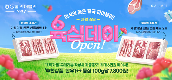 농협경제지주 축산경제가 운영하는 축산물 온라인 쇼핑몰 농협 라이블리가 오는 11일까지 한우고기, 한돈 선물세트를 각각 최대 59%, 43% 할인하는 ‘육심데이’ 행사를 진행한다.