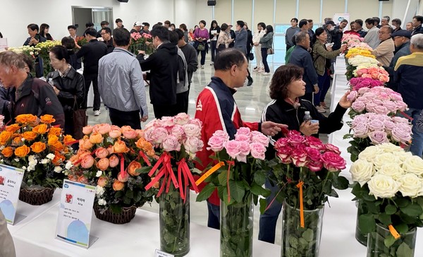 행사에 참석한 고양·파주 지역의 장미 재배농가, 유통 관계자, 종묘업체 등 화훼 전문가 50여 명은 각 기호도를 평가하고 현장 의견에 따라 우수계통 5종을 선발했다.
