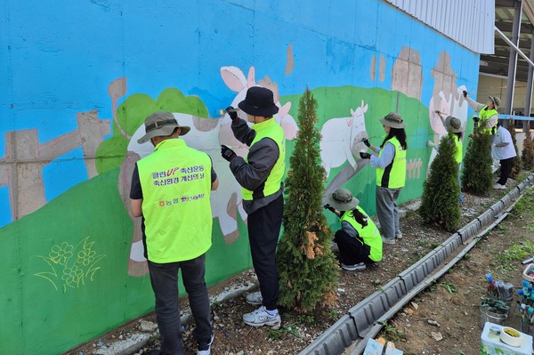 이날 일손 돕기는 서울축협 직원들과 공동으로 진행했으며 축사 외부 경관 개선을 위한 농장명과 가축 그림이 포함된 벽화그리기 활동 이후 농가 내·외부 정비와 농가 진입로 청소 등 환경 개선 활동을 펼쳤다.
