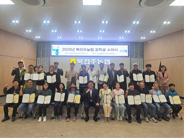 전북 북전주농협(조합장 이우광)은 지난달 30일 농협 하나로마트 2층 대회의실에서 ‘2025년 조합원 자녀 장학금 수여식’을 진행했다.