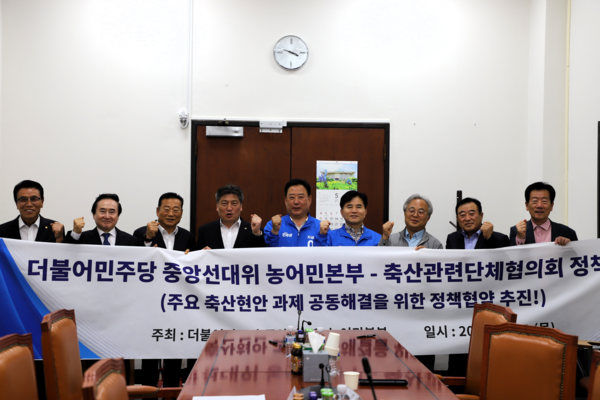 축산관련단체협의회와 더불어민주당 중앙선거대책위원회 농어민본부(본부장 서삼석 의원, 임미애 의원)가 지난 15일 국회에서 ‘6대 축산정책 과제’ 공동 추진을 위한 정책협약식을 가졌다.