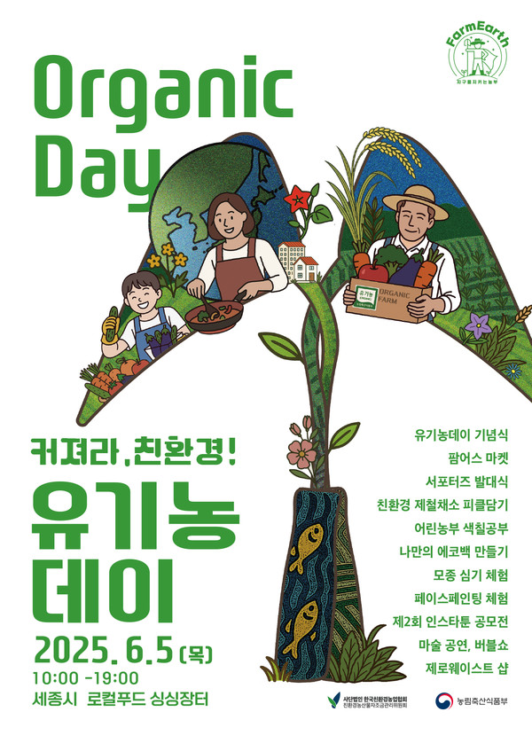 한국친환경농업협회와 친환경농산물자조금관리위원회는 다음 달 5일 세종로컬푸드 싱싱장터 도담점에서 ‘2025 유기농데이’ 행사를 개최한다.