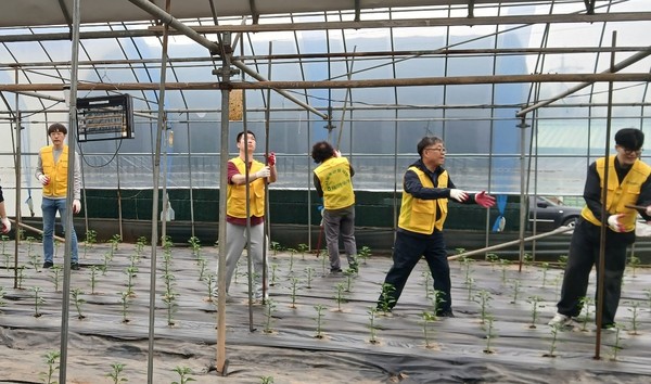 이날 농촌 일손 돕기에 참석한 직원 20여 명은 고추 지지대 철거, 영농 폐자재 정리, 전기시설 점검 등의 활동을 진행하며 구슬땀을 흘렸다.