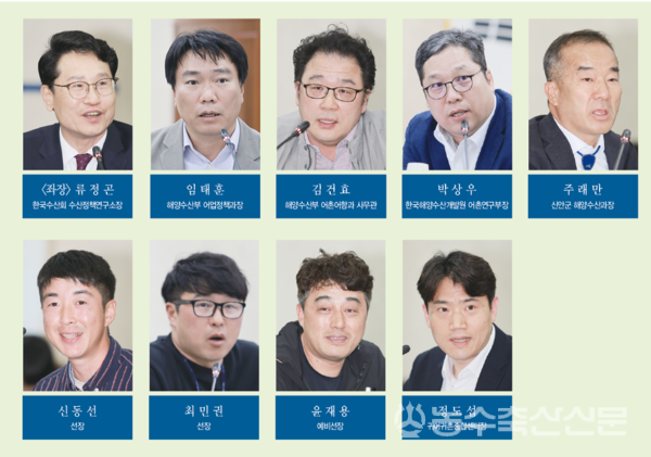 △지정토론 : 임태훈 해양수산부 어업정책과장, 김건효 해양수산부 어촌어항과 사무관, 박상우 한국해양수산개발원 어촌연구부장, 주래만 신안군 해양수산과장, 신동선 선장, 최민권 선장, 윤재용 예비선장, 정도섭 귀어귀촌종합센터장 <무순>