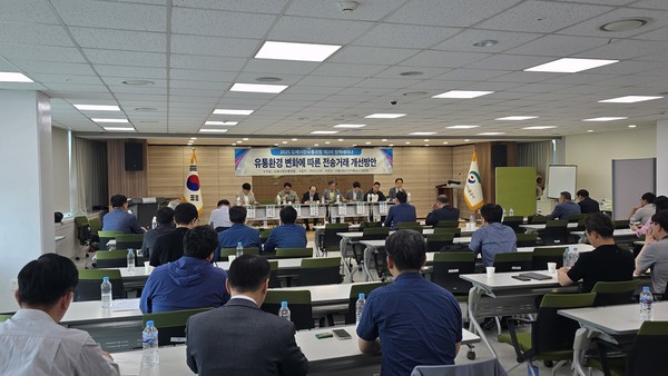 도매시장유통포럼은 지난 29일 서울시농수산식품공사 대강당에서 ‘2025 도매시장유통포럼 제2차 정책세미나 – 유통환경 변화에 따른 전송거래 개선방안’을 진행했다. 이날 세미나에는 농산물 도매시장 유통인과 학계 연구자, 관계 공무원 등이 모여 농산물 도매시장의 전송거래 현황을 점검하고 전망과 개선 방안을 논의했다.
