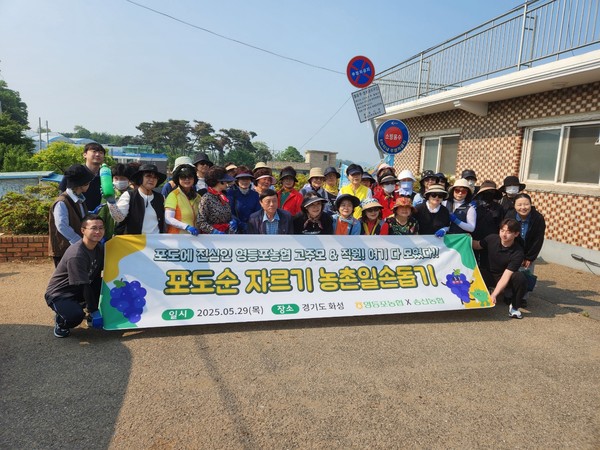 서울 영등포농협(조합장 백호)은 29일 화성시 송산면에 위치한 포도농가를 방문해 일손돕기를 실시했다고 밝혔다.
