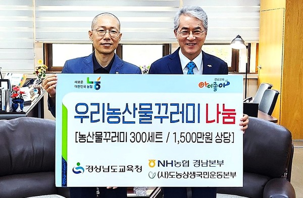 전국금융산업노동조합 NH농협지부 경남본부(위원장 류승완)는 지난 2일 신용카드 사회공헌재단 후원을 받아 관내 성장과 도움이 필요한 학생을 대상으로 경상남도교육청에 농촌사랑 우리농산물 꾸러미(300세트, 1500만 원 상당)를 전달했다.