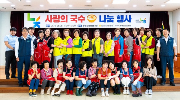 창원진동농협(조합장 김성재)은 지난 5월 28일 본점 3층 대강당에서 마을 어르신과 주민들을 위한 ‘사랑의 국수’ 나눔 행사를 열었다.