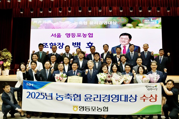 서울 영등포농협(조합장 백호)이 5일 농협중앙회 정례조회에서 ‘2025년 농·축협 윤리경영대상’을 수상했다.