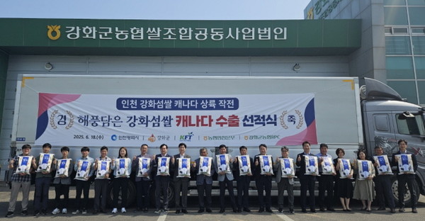 농협인천본부(총괄본부장 김재득)는 18일 강화군농협쌀조합공동사업법인(이하 강화군농협RPC)에서 ‘강화섬쌀 캐나다 수출 선적식’을 개최하고, 4년 연속 캐나다 수출을 추진한다고 밝혔다.