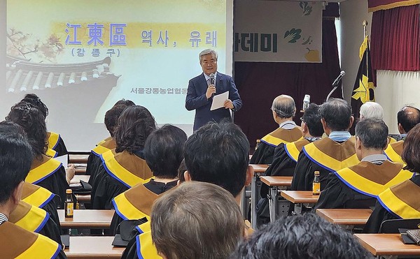 교육은 가정의 달 힐링콘서트, 유기농업·치유농업에 대한 올바른 이해, 몸과 마음의 호르몬 조화, 원예치료 및 치유농업센터 견학 등으로 진행됐다. 특히 수료식에 앞서 박성직 조합장이 마지막 강사로 나서 ‘강동구 역사, 유래’, ‘도시농협의 역할’ 주제로 강의했다.