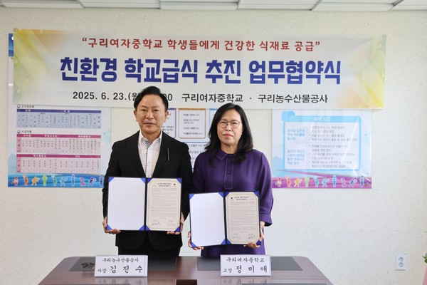 김진수 구리공사 사장은 “지난해부터 구리 지역 학생들에게 안전하고 건강한 친환경 먹거리를 제공하기 위한 연구 용역을 실시하고 다양한 사례를 분석했다”며 “이번 구리여중과의 협약을 시작으로 내년부터 관내 중고등학교 학생들에게 전면적인 친환경 급식이 이뤄질 수 있도록 많은 협조와 관심을 바란다”고 말했다.