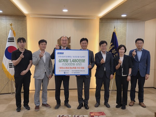 농협경제지주 부천축산물공판장과 협력사 단체인 부천과 축산물공판장을 사랑하는 모임(이하 부축사모), (사)나눔축산운동본부는 지난 25일 부천시청에서 부천시 관내 소외계층을 위한 1500만 원 상당의 농협목우촌 삼계탕을 조용익 부천시장에게 기부했다.