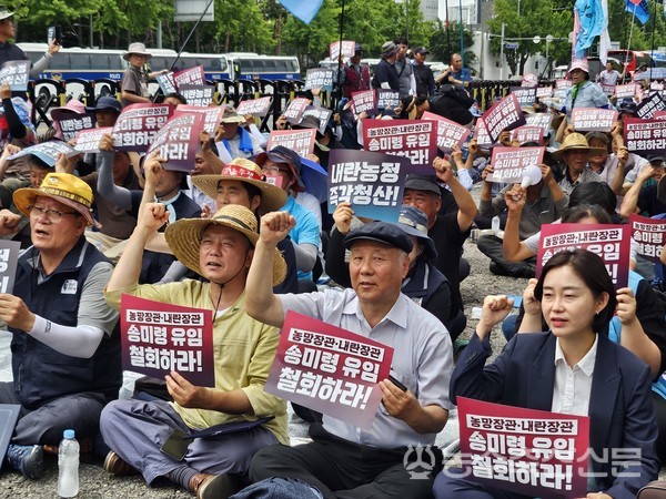 하원오 농민의길 상임대표는 “내란농정의 나팔수 역할을 한 송 장관의 유임은 농업인의 목소리에 귀 기울이지 않겠다는 선포와 다름 없다”고 성토했다.