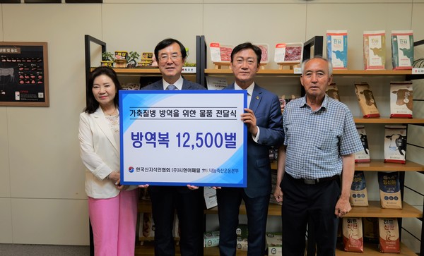 한국신지식인협회 중앙회는 지난달 26일 농협중앙회 본관에서 축산업계의 안전한 현장과 나눔 실천을 위해 나눔축산운동본부에 방역복 1만2500벌을 전달하는 ‘방역복 기부 전달식’을 가졌다.
