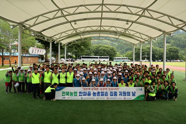 농협전북본부(총괄본부장 이정환)는 지난달 24일 진안군 정천면 일원에서 ‘전북농협 한마음 농촌일손 집중 지원의 날’ 행사를 열고 200여 명이 참여하는 대규모 일손 돕기를 진행했다.