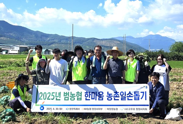 이날 일손돕기에는 박효도 북창원농협 조합장을 비롯한 조합 임직원, 정상판 농협창원시지부 회원지원단장을 비롯한 직원, 창원시 북면(면장 홍성희), (사)고향주부모임 창원시지회 회원 등이 참여해 구슬땀을 흘렸다.