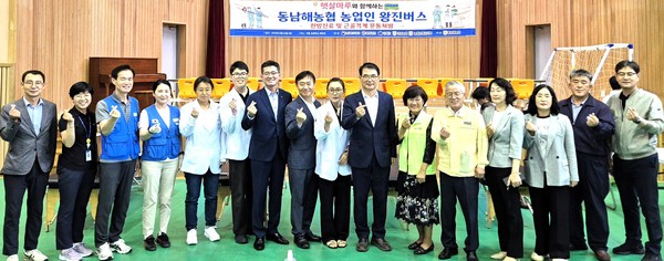 동남해농협(조합장 이은영)은 지난 6월 24일 남해군(군수 장충남) 이동면에서 관내 농업인과 주민 300여 명을 대상으로 농촌 지역 의료 공백을 메우기 위해 찾아가는 의료 서비스‘농촌 왕진버스’를 운행했다.