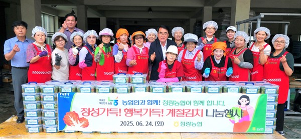 이번 나눔행사는 청량농협 주부대학 총동창회 회원들과 임직원들의 정성을 모아 열무물김치를 직접 담가 전달했다. 이를 통해 지역 어르신들의 건강을 기원하고 따뜻한 마음을 나누는 뜻깊은 시간이 됐다.