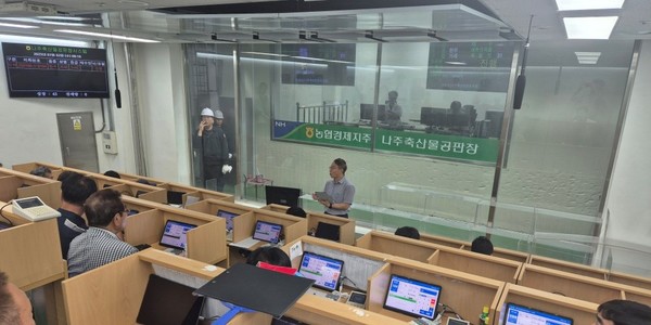 농협경제지주 나주축산물공판장이 지난 3일 소·돼지 경매에 ‘농협축산물공판장 스마트경매시스템’을 도입한 첫 경매를 진행했다.