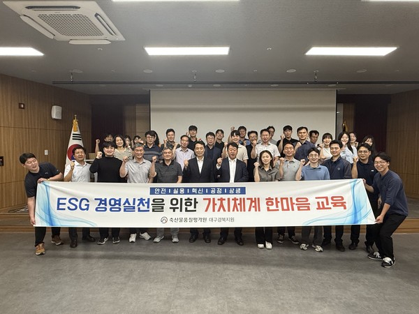 축산물품질평가원 대구경북지원(지원장 김학성)은 최근 조직 내 건강한 소통과 협업 문화를 조성하고 환경·사회·지배구조(ESG)기반의 공공기관 역할을 내실화하기 위한 ‘가치체계 한마음 행사’를 성공적으로 개최했다.