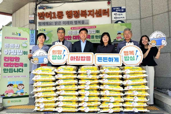 농협부산본부(본부장 이수철, 이하 부산농협)와 농협경제지주 반여공판장(장장 최광순)은 지난 9일 지역사회 나눔 실천을 위해 반여1동 행정복지센터(동장 박현주)에 부산에서 생산된 황금쌀 800kg을 기탁했다.