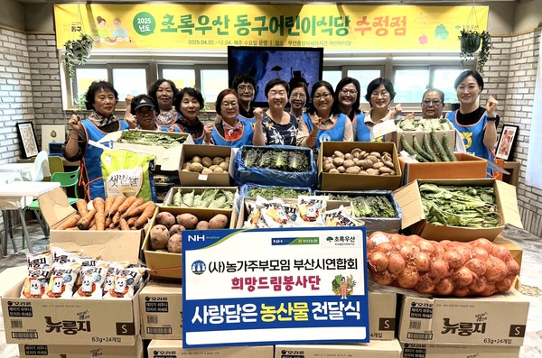 농협부산본부(본부장 이수철, 이하 부산농협)은 지난 8일 부산 동구 소재 초록우산어린이재단 부산종합사회복지관에서 농가주부모임 부산시연합회(회장 박미숙)와 함께 ‘사랑담은 농산물 전달식’을 가졌다.