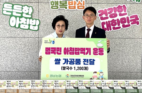 이상진 농협경남본부 부본부장(사진·오른쪽)은 “우리 쌀로 만든 쌀 가공식품은 바쁜 아침에도 간편하게 먹을 수 있는 훌륭한 대안”이라며 “이번 행사를 계기로 많은 도민이 아침밥먹기의 중요성을 다시 한번 인식하고 실천하는 계기가 되길 바란다”고 말했다.