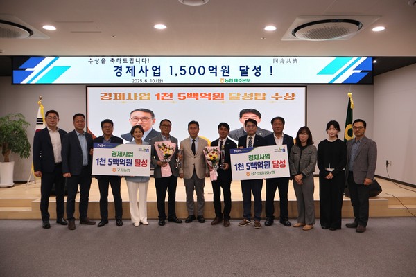 경제사업 달성탑은 농협경제지주가 전국의 지역농협과 품목농협을 대상으로 매 분기말 기준 과거 1년간(2024년 4월1일~올 3월31일) 경제사업 종합실적 1500억 원 이상을 달성한 사무소에 시상하고 있다.