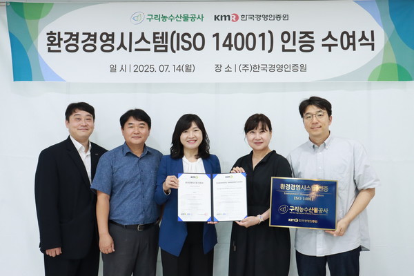 구리농수산물공사는 최근 한국경영인증원(KMR)으로부터 환경경영시스템 국제표준 ISO14001을 최초로 인증 받았다.