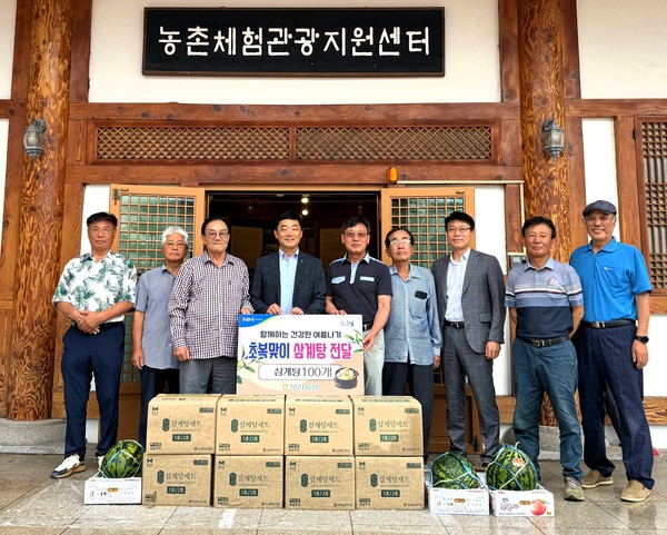농협부산본부(본부장 이수철)는 초복을 맞아 지난 17일 부산 기장군 소재 다복솔 팜스테이마을을 직접 방문해 삼계탕 100인분과 계절과일을 전달했다.