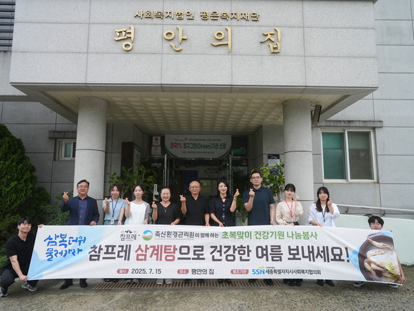 동물복지 선도기업 참프레가 지난 15일 초복을 맞아 세종시에 위치한 노인복지시설 ‘평안의 집’을 방문해 삼계탕 제공과 배식 봉사활동을 펼쳤다.