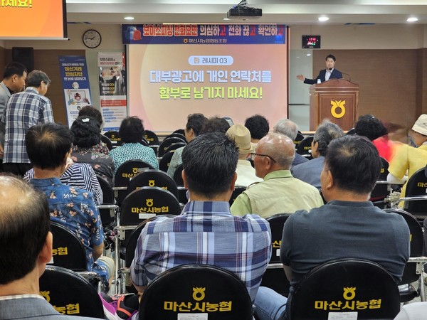 이날 교육 강사로 나선 김정규 마산시농협 상임이사는 “보이스피싱은 누구에게나 일어날 수 있는 범죄”라며 “고령층 조합원이 이해하기 쉬운 교육을 통해 조합원 스스로가 사기를 예방할 수 있도록 돕는 것이 중요하다”고 강조했다.