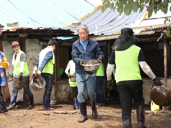 지난 24일에도 강호동 농협중앙회장을 비롯한 임직원 100여 명은 집중호우로 특별재난지역으로 선포된 경기 가평지역을 방문해 파손 농자재 정리, 침수주택·하우스 등 피해복구 작업 등을 실시했다.