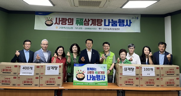 나눔축산운동본부 경기도지부(지부장 이덕우 남양주축협장)와 농협경기본부(본부장 엄범식)는 지난 25일 고양축협(조합장 유완식)에서 '사랑의 福 삼계탕 나눔행사'를 개최했다.