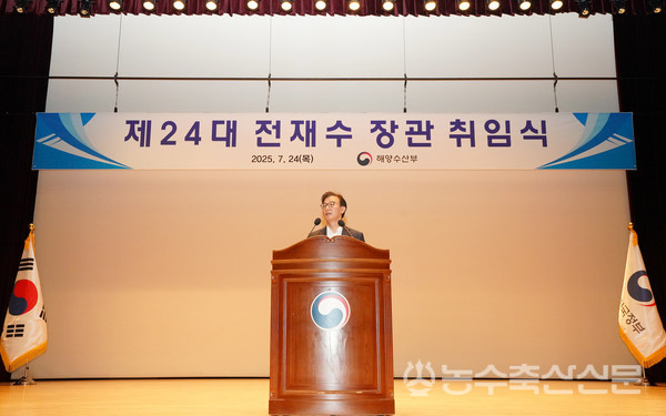 전 장관은 지난달 24일 취임식<사진>을 갖고 이같이 밝혔다. 이재명 정부의 첫 해수부 장관인 전 장관은 해수부의 부산 이전을 계기로 행정과 산업, 금융기능을 한데 모아 해양수산업의 새로운 지평을 열고 도약의 기반을 마련하겠다는 것도 강조했다.