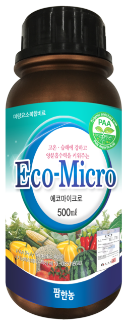 에코마이크로는 가뭄이나 과습 등 불량한 재배 환경에서도 작물의 안정적인 생장을 도와 농가들에게 꾸준한 인기를 끌고 있는 관주·엽면시비용 비료다.