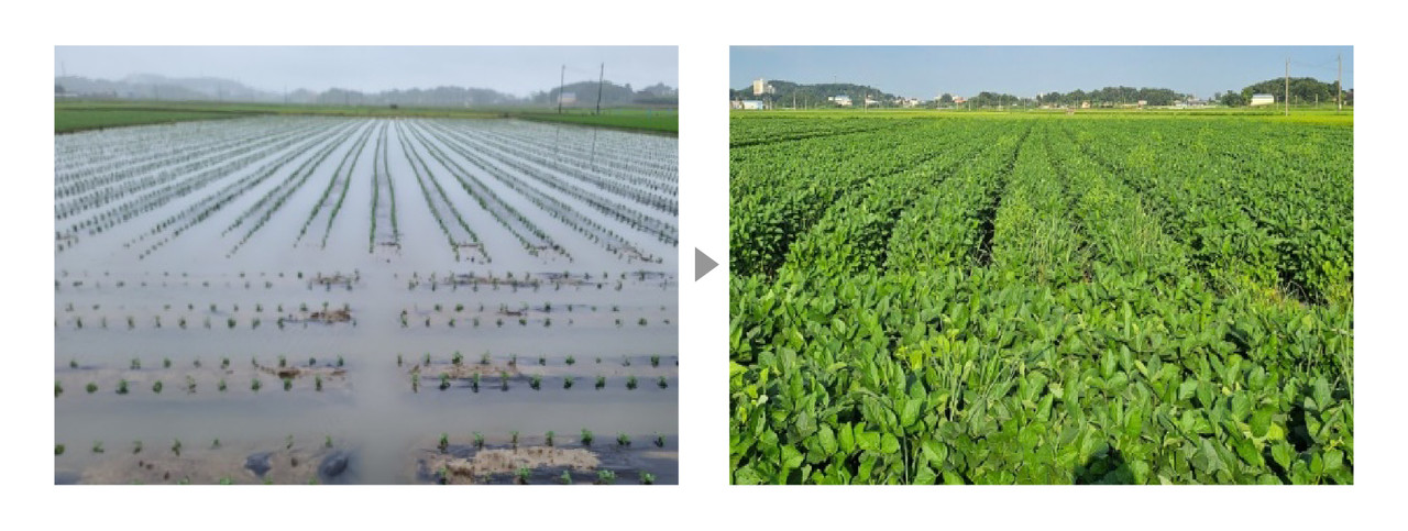 닷새간 이어진 7월 극한호우로 전국 곳곳에서 농작물 침수 피해가 발생한 가운데 2023년 전북 김제 집중호우 당시 작물 생육 회복 효과로 호평 받았던 팜한농의 ‘에코마이크로’가 다시 주목받고 있다.