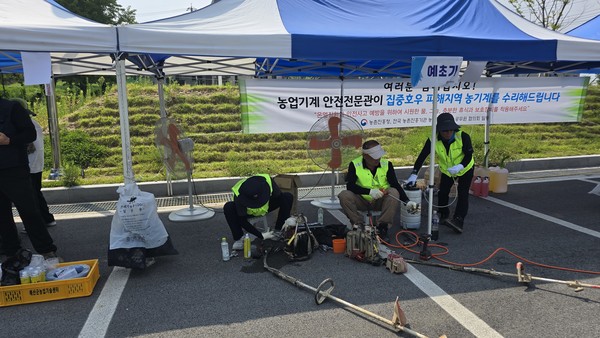 이들은 4개 시군 농기계임대사업소와 마을회관 등 7곳에 긴급 파견돼 예초기‧경운기‧관리기‧양수기‧동력분무기 등 소형농기계를 중점 수리하게 된다. 아울러 농기계 세척·엔진 분해·수분 제거·오일 교환·재조립 작업을 일괄 진행할 예정이다.