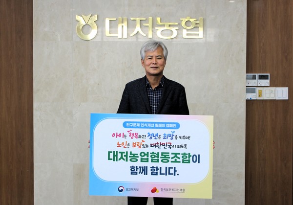 류태윤 대저농협 조합장이 최근 인구문제에 대한 사회적 공감대 형성을 위한 ‘인구문제 인식개선 릴레이 캠페인’에 동참했다.