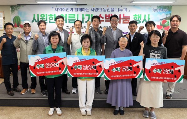 농협부산본부(본부장 이수철)와 농협경제지주 부산공판장(장장 강무기)은 지난 7월 24일 지역사회 나눔을 위해 엄궁농산물도매시장 유통 종사자들과 함께 수박 700통을 기부했다.