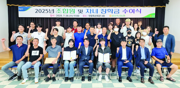 울산축협(조합장 윤주보)은 지난달 28일 울산 울주군 언양읍 소재 축산회관 3층 회의실에서 윤주보 조합장을 비롯한 조합 임원과 간부 직원, 조합원과 자녀 등 40여 명이 참석한 가운데 ‘2025년 조합원 및 자녀 장학금 수여식’을 개최했다.