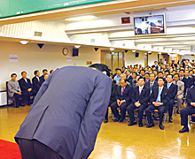 정대근 농협중앙회장이 지난 1일 통합농협 2기 회장 취임사에 앞서 대의원조합장들에게 허리굽혀 인사를 하고 있다. 엄익복 다른기사 보기 저작권자 © 농수축산신문 무단전재, 재배포 및 AI학습 이용 금지 당신만 안 본 뉴스 [AFL칼럼] ASF 백신 개발, ‘K-방역’의 새 지평 열까 서울 영등포농협 사회공헌실천재단, '가정의 달 이벤트' 경품 증정식 개최 예산군, ‘힐링·건강·나눔’으로 주민 삶의 질 높인다 영등포농협 사회공헌실천재단, 동작구 '사랑의 온도탑' 제막식 '1호 주자'로 나서 지역사회 온기 확산 물꼬 터 차기 농협 축산경제 대표이사 선거 3파전 영농형태양광, 임차농 보호장치 마련을…정부, 투기 방지법 ‘밑그림’ [Issue+] 2026 국제곡물시장 전망 [AFL칼럼] ASF 백신 개발, ‘K-방역’의 새 지평 열까 댓글삭제 삭제한 댓글은 다시 복구할 수 없습니다. 그래도 삭제하시겠습니까? 비밀번호 닫기 기사 댓글 0 댓글 접기 로그인 후 이용 가능합니다. 댓글 내용입력 비회원 로그인 이름 비밀번호 댓글 내용입력 댓글쓰기 계정을 선택하시면 로그인·계정인증을 통해 댓글을 남기실 수 있습니다. 회원 로그인 비회원 글쓰기 이름 비밀번호 자동등록방지 로그인 옵션 창닫기 주요기사 숭례문 앞에 모인 ‘유령농부’들…유기농업 2배 확대 결의 플랜티팜, 사우디 성지 메디나에 K-스마트팜 구축한다 산림경영지도 우수사례 최우수상에 이이섭 상주시산림조합 지도원 세포배양 인조축산물, 안전성 문제 여전히 화두 [Issue+] 지속가능한 농업은 우리의 사명...ESG 경영 발굴·확산 ‘주목’ [농수축산신문-수협중앙회 공동기획] 착용海요 구명조끼 안전海요 우리바다 ⑦ 제주시 이보라 조일호 선장