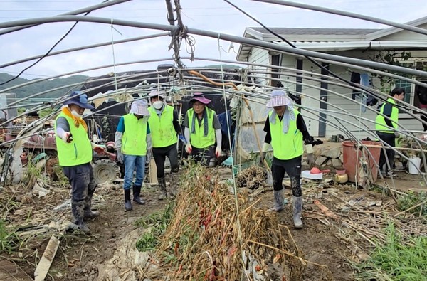 이날 복구작업에는 김성수 지부장과 사천 관내 농·축협 조합장, 임직원 등 총 20여 명이 참여했다. 봉사단은 하우스 비닐 제거와 복구작업을 집중적으로 지원하며 구슬땀을 흘렸다.