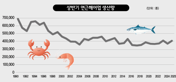 상반기 어획실적만을 비교할 경우 연근해어업 생산량이 44년만에 100만 톤을 하회했던 2016년 이후로는 높은 수준을 보였다. 상반기 어업 생산량은 2016년 35만4609톤을 기록한 이후 30만 톤 대 중후반을 기록해오다 2023년과 올해만 40만 톤을 넘어섰다.