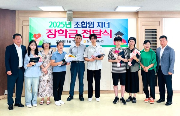 울산원예농협(조합장 김창균)은 지난 7일 본점 4층 세미나실에서 김창균 조합장을 비롯한 조합 임직원, 조합원과 자녀 등 20여 명이 참석한 가운데 ‘2025년 조합원 자녀 장학금 전달식’을 개최했다.